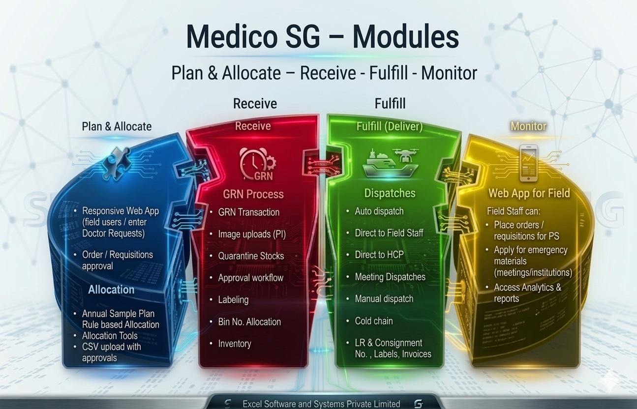 In the high-stakes world of pharmaceutical distribution, "close enough" isn't good enough. Medico SG is a powerhouse enterprise solution designed to bridge the gap between Corporate Office Marketing strategy, Warehouse execution and Field Force activity. We transform your supply chain from a cost center into a compliant, high-velocity engine.